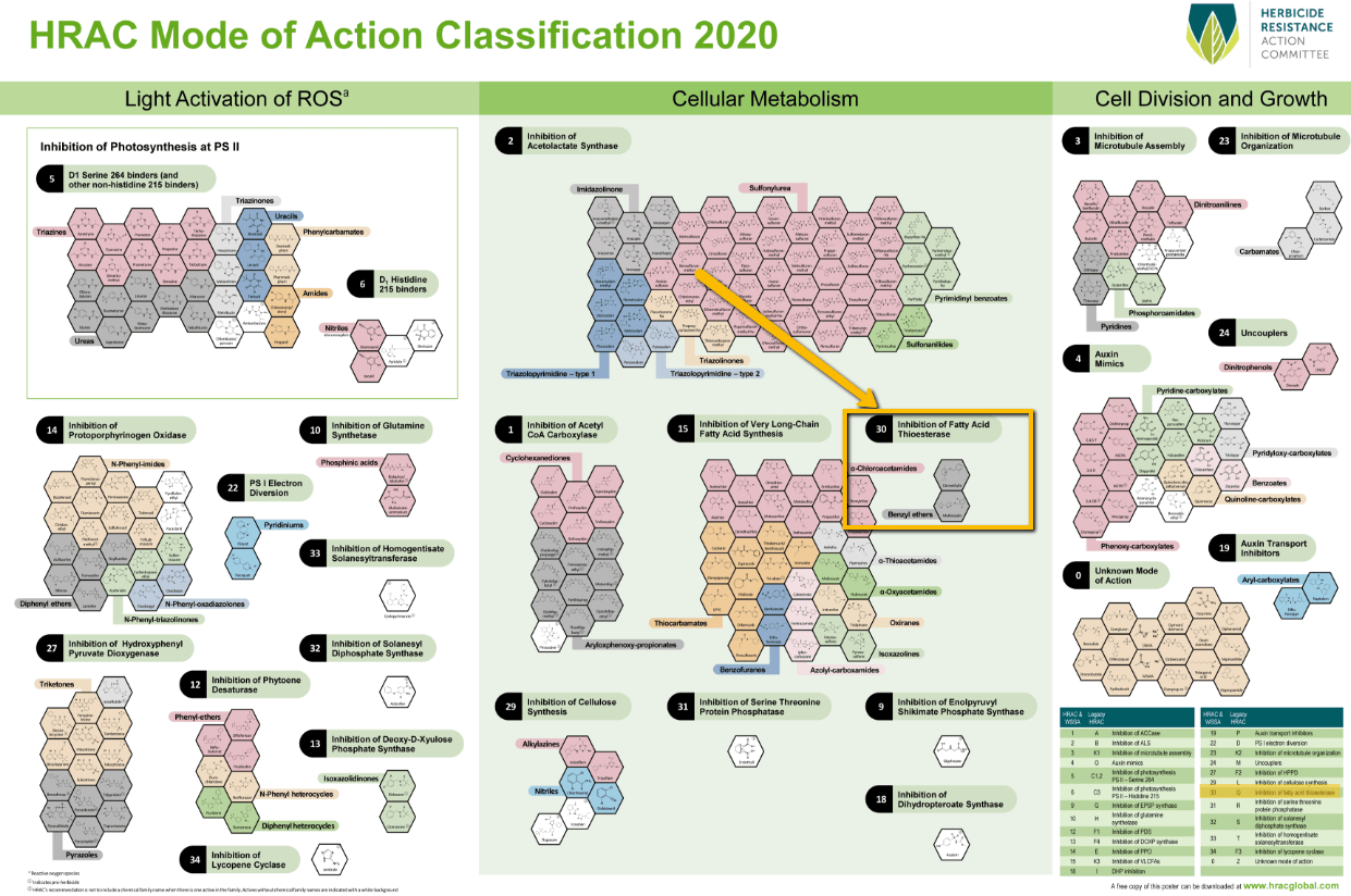 Desde 1985 el HRAC (Herbicide Resistance Action Committee) no aceptaba y añadía un nuevo modo de acción contra las malas hierbas. Es el nuevo herbicida de BASF conocido comercialmente como Luximo -y cuyo principio activo es el cinmethylin– el responsable de esta efemérides. Este nuevo fitosanitario inhibe la tioesterasa de acidos grasos y como consecuenciaSigue leyendo «Tras 35 años, nuevo modo de acción contra las malas hierbas»