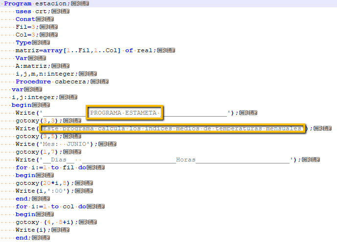Programa en lenguaje Pascal usado en la asignatura de libre elección «Métodos informáticos» en el año 2006 en segundo curso de Ingeniero Agrónomo
